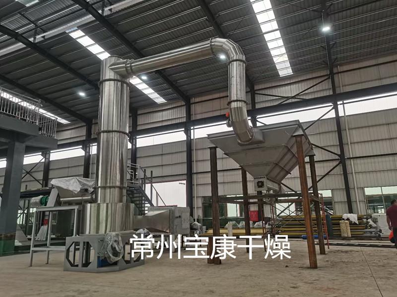 2. 工作流程 热风制备:空气经加热至130-300℃(根据物料形态调整),切向进入干燥室底部环隙,形成高速旋转流场 进料分散:膏状硅酸钠(含水率30-40%)由螺旋加料器定量进入干燥室,在高速搅拌桨(600-2000r/min)作用下瞬间分散 干燥分级:细颗粒随气流上升,经分级环控制粒径;粗颗粒回落底部再次破碎干燥 收集处理:干燥物料经旋风分离器+布袋除尘器收集,尾气净化后排放 干燥动力学:气固两相在干燥室内形成强旋转流场,固相惯性大于气相,相对速度大,传热传质系数较传统设备提高3-5倍